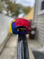 New Tommy Hilfiger Liquid Swords Upcycled 5-Panel Hat made from Recycled Hilfiger Sailing Jackets and Tommy Jersey, with Added Custom Artwork made by Sublimation Ink Pressed on to Waterproof Tech Fabric Scraps, Reflective Materials, and Yellow Mesh Luminous Strip. Side Zipper Stash Pocket. Includes Fully Adjustable Webbing Strap and Center Release Buckle Closure. Yellow Fleece Under Brim from Jacket.