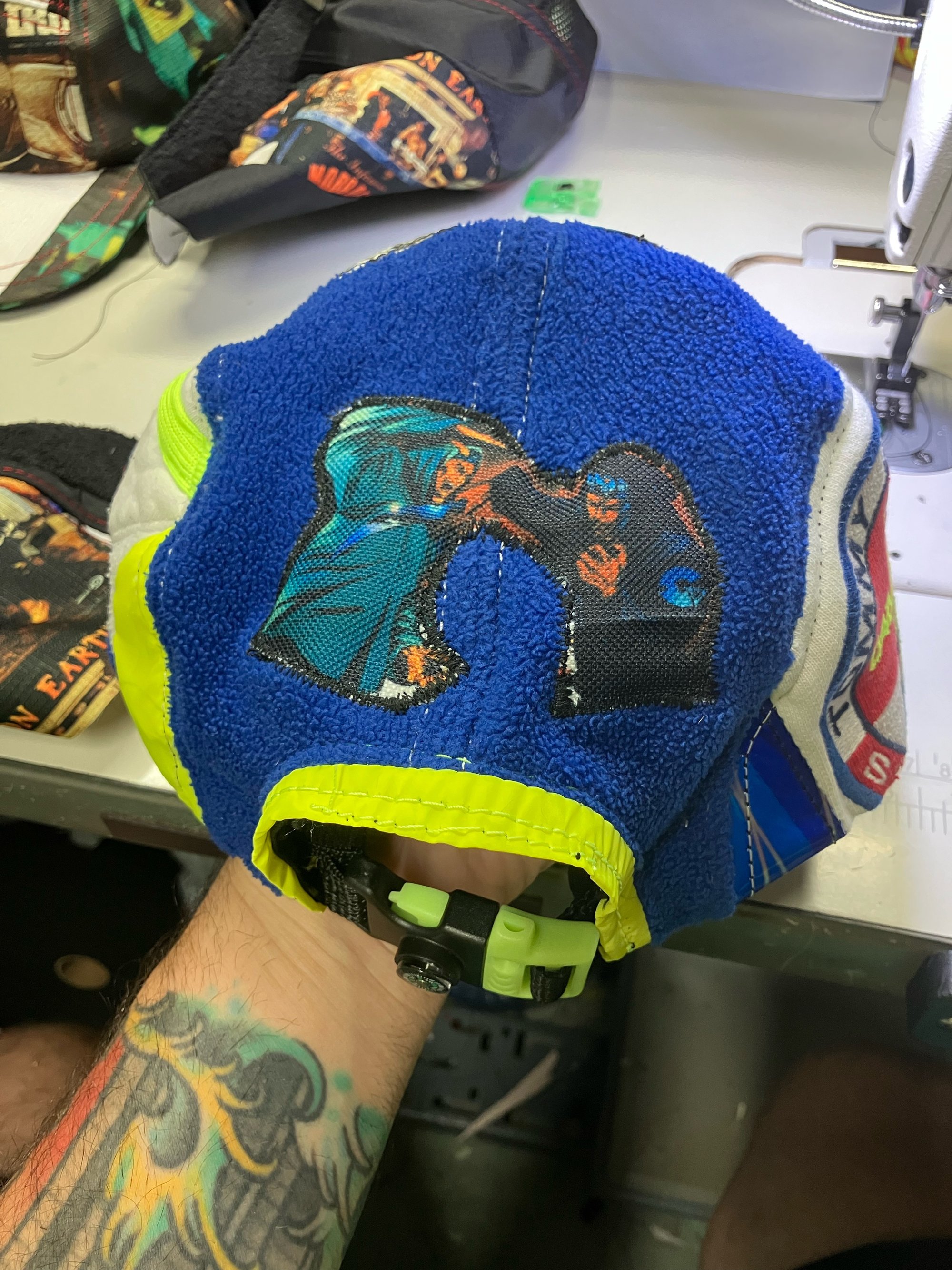 Upcycled vintage tommy sailing fleece hilfiger hat made from hoodie/pullover with added 3m yellow reflective sailcloth and custom wu tang gza liquid swordz 90s artwork sublimated on waterproof tech fabric scraps 🙏🫡 god bless the children. This item is 1 of 1 #bespoke #nyc #90s #streetwear